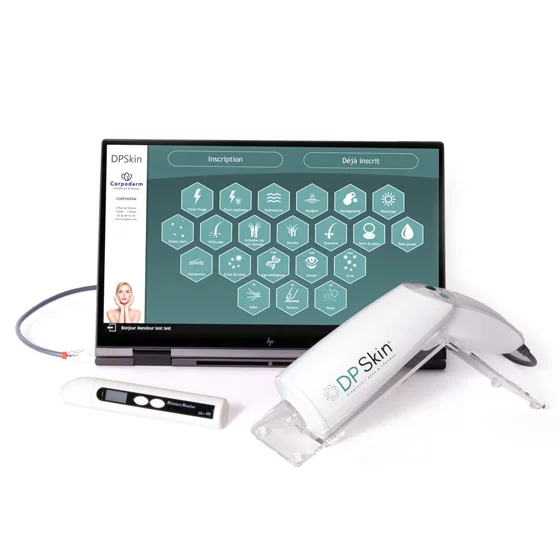 Le DP Skin® est un analyseur de peau et de cheveux de dernière génération qui utilise l’intelligence artificielle pour évaluer avec précision l’état de votre peau selon 15 critères cutanés et 4 critères capillaires.
